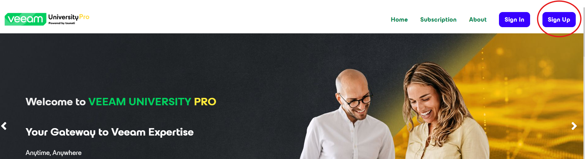 From the Veeam University Pro homepage